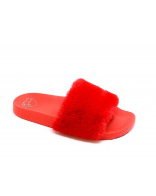 Design pulito ed essenziale per la ciabattina a fascia Amarene dal comodo plantare anatomico, suola resistente e battistrada studiato per garantire un ottimo grip anche su superfici bagnate. La stilosa fascia in eco pelliccia rossa effetto fluffy e fodera in lycra, garantisce massima morbidezza già alla prima calzata.