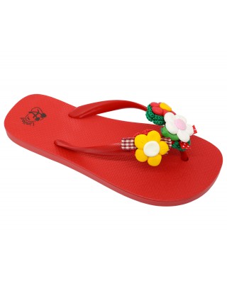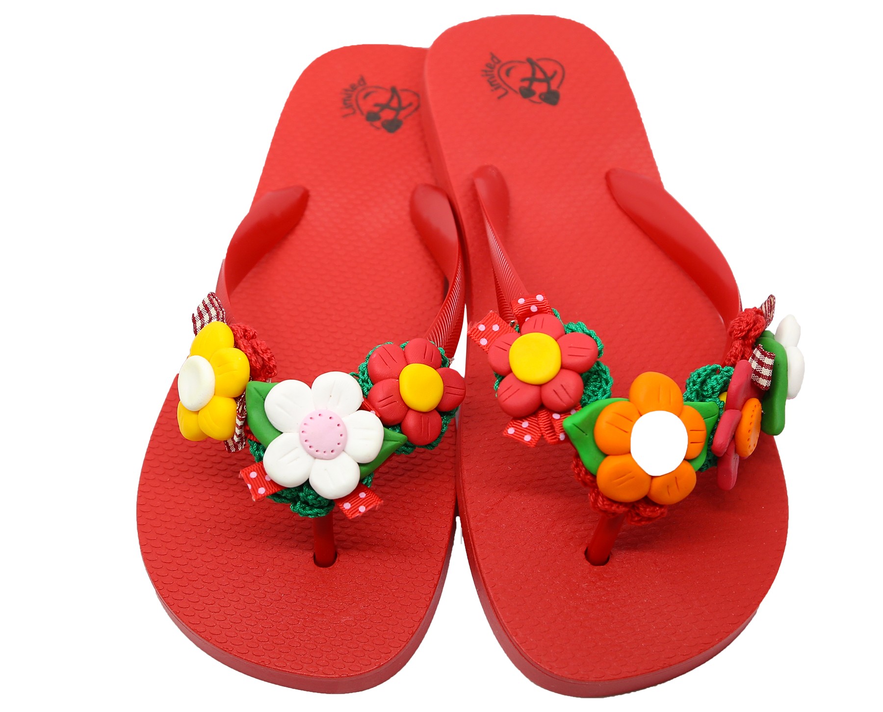 Ciabattina infradito rossa con decori interamente realizzati ed applicati a mano in pasta di fimo.