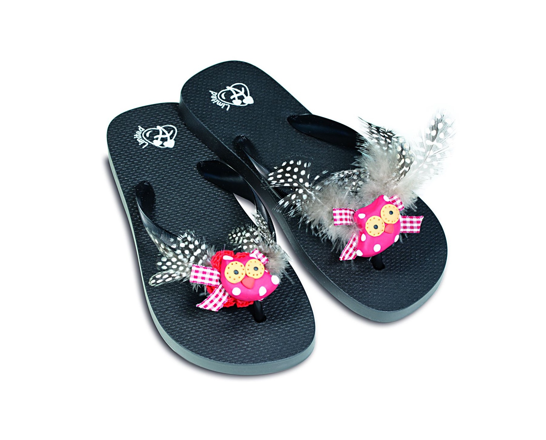 Ciabattina infradito nel colore nero con decori interamente realizzati ed applicati a mano in pasta di fimo.